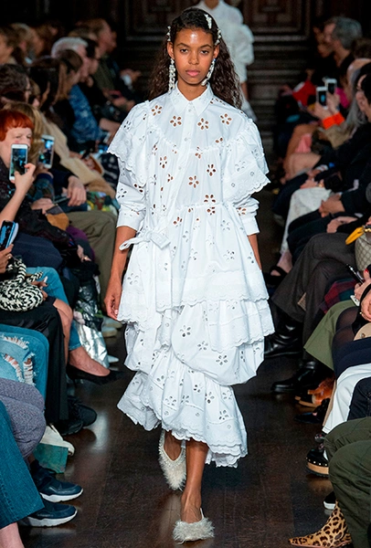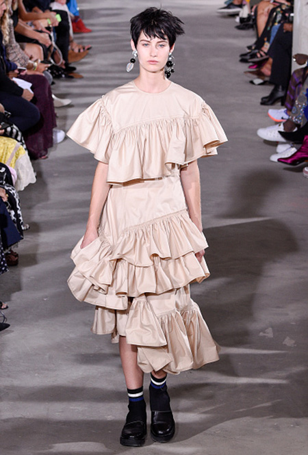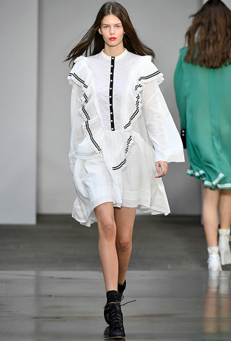 Если не боитесь экспериментов, решайтесь на утрированно объемные воланы. В компанию к ним добавьте грубые ботинки или кеды, как на показах у Филлипа Лима и Лоренцо Серафини. Если вы за классику, то точно оцените романтичное платье с небольшой аккуратной отделкой в сочетании с мюлями или туфлями на устойчивом каблуке.