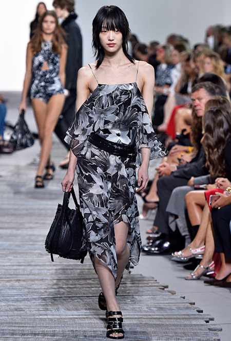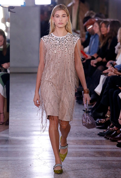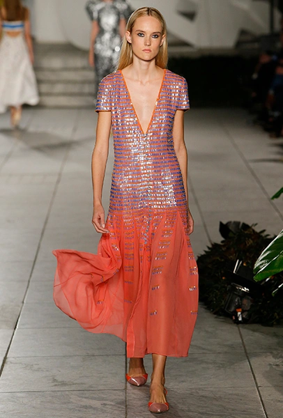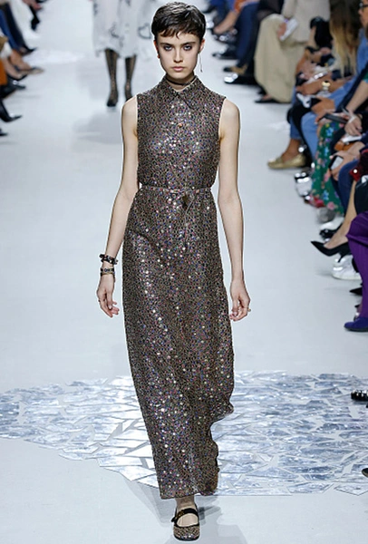 Блестеть на платье в этом сезоне может все: глиттер, пайетки, стеклярус. Летом сияющее платье идеально подойдет для вечеринки. Важный нюанс: если переживаете из-за пары набранных за зиму килограммов — избегайте приталенных моделей, ведь такой «перелив» визуально добавляет объем.