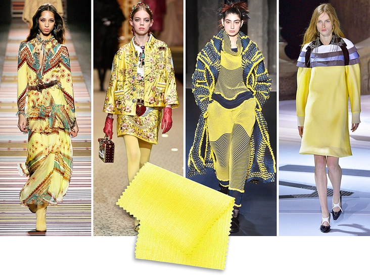 Весной и летом желтый назывался «Иволга» (Meadowlark), осенью и зимой будет называться «Цейлонский желтый» (Ceylon Yellow). «Желтый значительно прибавил в весе за последние три сезона, — считает Эйсман. — Этот пряный оттенок с экзотическими нотами всегда будет смотреться волшебно, если добавить к нему в пару другие популярные этой осенью оттенки. Например, ультрафиолетовый или «Лепесток крокуса».