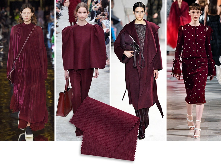 Осенью и зимой на пике будут сразу два оттенка красного. Первый называется «Красная груша» (Red Pear). Он отчетливо напоминает цвет марсалу, который бил рекорды популярности три года назад. Разница между ними есть: первый больше тяготеет к коричневому, а второй — к фиолетовому. «Этот цвет логично продолжает предыдущий сезон, в котором тоже был красный», — утверждает Эйсман. Эффектнее всего этот цвет смотрится соло, но если хотите разбавить его другими оттенками, то выбирайте такие же глубокие и насыщенные.