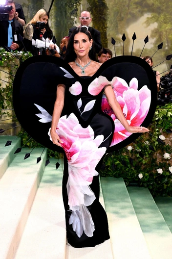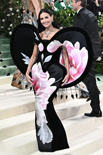 В этом году Деми выбрала типичное платье интроверта — ни один человек не сможет приблизиться к тебе и на пару метров, так что messages only. К слову, она была не единственной звездой в платье с «пиками» — где-то по дорожке ходила создательница наряда Деми Харрис Рид.