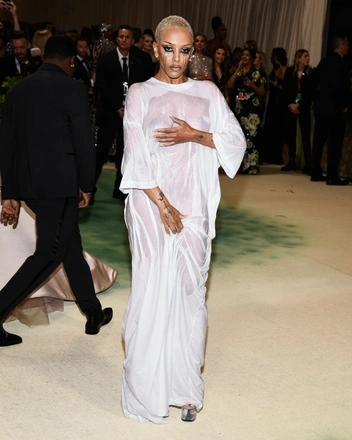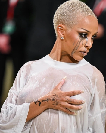 Образ Доджи Кэт на балу Met Gala признали одним из наиболее неудачных. А некоторые модные критики и вовсе уверены, что Анна Винтур больше не пригласит исполнительницу на ковер Metropolitan. Мы же думаем, что не все поняли замысел Доджи и Демны Гвасалия, который и готовил ее к выходу. Вероятно, команда хотела показать, что звезда только вышла из душа, накинула футболку и примчалась на бал — отсюда, собственно, и потекшая тушь. К слову, это отсылает нас к одной из возможных причин популярности «голых» платьев — звезды хотят показать, что наряды не так уж и важны.