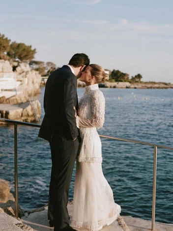 У супругов получилась одна из самых светских и обсуждаемых свадеб сезона: топ-модель Анна Кливленд и основатель журнала Dazed Джефферсон Хэк собрали, пожалуй, самую модную явку — от Кейт Мосс (бывшей девушки и матери дочери бизнесмена) до Тильды Суинтон. На ней: кружевное платье Laura Biagiotti с длинным шлейфом и открытой спиной, которую подчеркнуло жесткое колье Serpenti от Bulgari со змеей во главе, и туфли Roger Vivier. На нем: голубой костюм Dior, который он сменил впоследствии на черный смокинг.