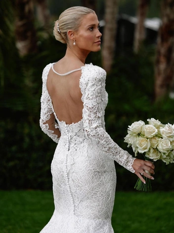 Вслед за красавицей Востока свадьбу сыграла еще одна знаменитая блондинка: племянница принцессы Дианы Амелия Спенсер вышла замуж за нутрициолога и фитнес-тренера Грега Маллетта. Леди отправилась к алтарю в безупречном белом платье творчества Atelier Versace: открытая спина, изящный пуговичный ряд, повторяющий изгибы фигуры, расклешенная юбка и полупрозрачные вставки на талии. Вслед за невестой тянулась длинная фата, а вперед ее вел букет белых роз.
