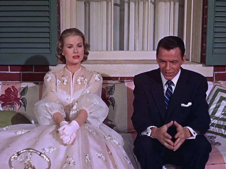 История о девушке из высшего общества Трэйси Саманта Лорд, которая собирается выйти замуж. Героиня в исполнении Грейс Келли отдает предпочтение элегантному шифоновому платью с цветочной вышивкой, пышной юбкой и воздушными рукавами. Завершают образ короткие перчатки и шляпа с бантом. Художник по костюмам Хелен Роуз к моменту выхода фильма уже одевала Грейс в трех картинах: «Могамбо» (1953), «Зеленый огонь» (1954) и «Лебедь» (1956).