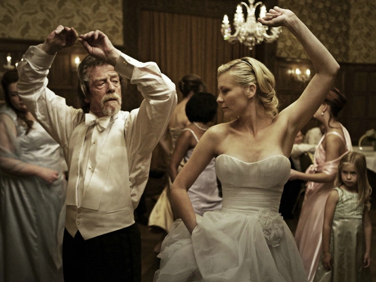 В фантастической драме Ларса фон Триера про невесту и уничтожение земли по задумке режиссера платье должно было отражать безумную радость от праздника и осознание неизбежности катастрофы. Идеи Ларса воплощали несколько дизайнеров во главе с Мэнон Расмуссеном. Кирстен Данст выглядела настоящей принцессой в платье, расшитом цветами, и с фатой.