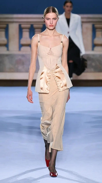 Спущенные плечи на платьях, топах и свитерах — еще один тренд нью-йоркской Недели моды, который мы будем наблюдать не только на ковровых дорожках, но и в жизни. Такой фасон был актуален в начале нулевых, но, как вы знаете, мода циклична, поэтому в 2023 году мы снова примерим то, что когда-то носили наши мамы и бабушки. Только на этот раз дизайнеры предлагают нам отказаться от белья и украшений и надеть избранную модель на голое тело, подчеркнув длинную шею и изящные ключицы.