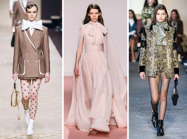 Пышные банты вовсю предстали летом и весной, а зимой и осенью станут для нас милым дополнением даже для самого скучного гардероба. Самый распространенный вариант – на воротнике рубашки или блузы. Однако никто не запрещает украсить им вечернее платье или прическу, как это регулярно делают селебрити на ковровых дорожках.