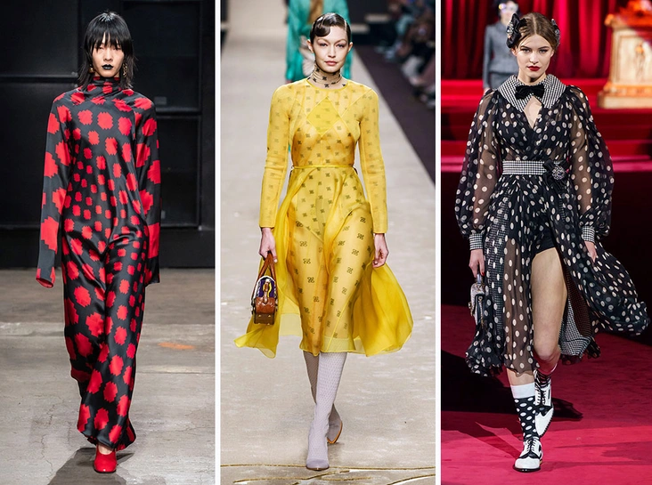 Принт в горошек в уважаемый список базовых принтов вошел давно, однако в новом сезоне он появляется в необычной интерпретации. Роль гороха теперь играют не только всем знакомые геометрические фигуры, но и сердца, как у Marni, или сияющие камни и кристаллы, как у Alberta Ferretti, – пусть принт будет казаться таковым только издалека.