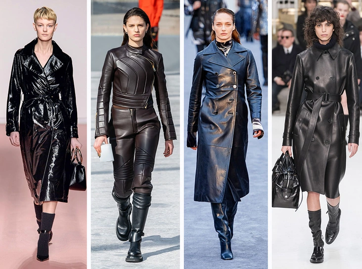 Брутальная и даже нарочито агрессивная кожа стала безусловным хитом прошлого сезона, захватила весенне-летние тренды и на этом останавливаться не собирается. Именно поэтому дизайнеры из принципиально разных по стилистике брендов предлагают нам одни и те же кожаные тренчи и пальто с поясом. Пересматривать культовый фильм Ланы и Лилли Вачовски, чтобы разобраться в массовом тренде, не обязательно, но лишним точно не будет.