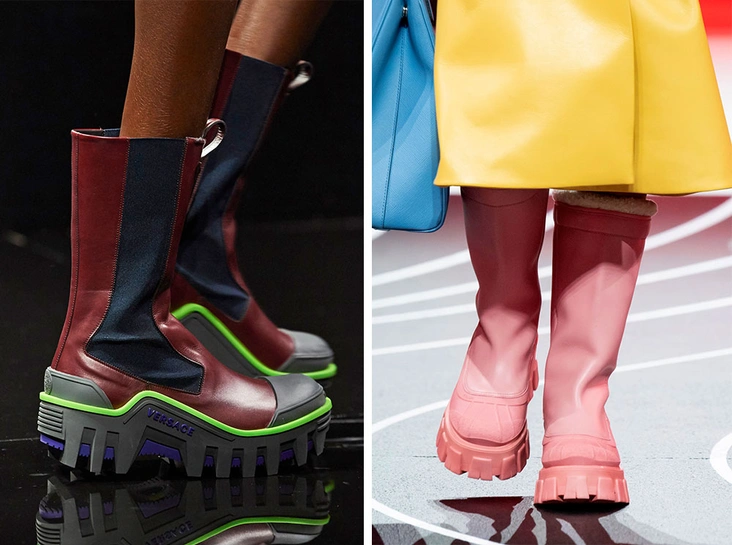 Мягкая зима уже стала традицией для центральной части России. Дождливые и слякотные месяцы сменили холодную русскую стужу, поэтому самым удачным решением для осени и зимы станут массивные резиновые сапоги на протекторной подошве. Такие точно не промокнут, а в случае неожиданных холодов их можно дополнить теплыми вязаными носками. Присмотреть новую пару обуви можно будет у Versace, Prada, MSGM и Bottega Veneta.
