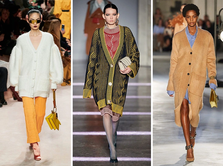 Кардиганы вернулись в моду несколько сезонов назад и к этому времени стали для нас привычной униформой в холода. В новом сезоне на подиумах представлены все главные модели: как облегающие варианты из тонкого трикотажа, так и объемные со спущенной линией плеч, как у MSGM, удлиненные кардиганы-платья, как у N°21, или укороченные, как у Marni и Versace.А варианты на запах можно присмотреть у Fendi и Missoni – такие можно носить и с поясом в цвет, и с акцентными ремнями и поясами (читайте также: Тепло и уютно: с чем носить кардиганы (и где найти самые модные)).