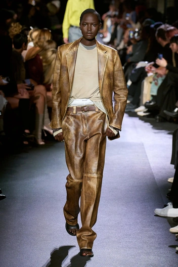 Кожа продолжает оставаться самым востребованным материалом, и следующей весной будут пользоваться популярностью костюмы из кожи. Это может быть привычный брючный с жакетом, или сет из цветной кожи с брюками в мотостиле и бомбером, а также комплект из фактурной кожи с курткой в винтажном стиле. Такой аутфит всегда выглядит эффектно и дорого и легко впишется в любой гардероб.