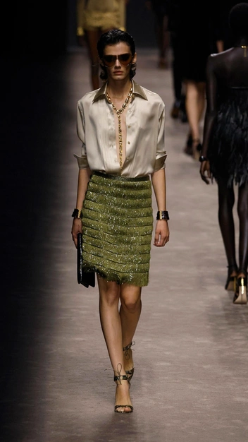 Неважно как, главное — блистать в прямом смысле этого слова. Милан был полон сияния на Неделе моды: бренды включили в свои весенне-летние коллекции металлизированную одежду, платья с пайетками, кристаллами и стразами, юбки, украшенные сверкающим бисером, блестящие туфли и массивные украшения.