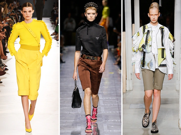 Шорты свободного кроя до колена с завидной периодичностью то уходят с модных подмостков, то возвращаются вновь. Отпустить их навсегда сложно: универсальные бермуды в сочетании с легким объемным жакетом или водолазкой можно легко надеть в офис, а потом сменить строгий верх на топ или базовую футболку и отправиться на неформальную встречу.