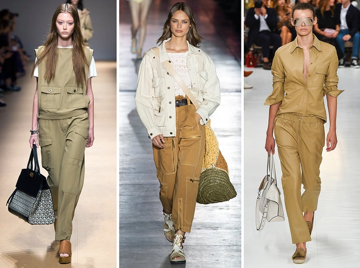 Плотный хлопок и лен, натуральная цветовая палитра и накладные карманы — главные составляющие образа обитательницы пустынной саванны. В будущем сезоне дизайнеры раскладывают гардероб в стиле сафари на отдельные компоненты: самыми актуальными стали цвета хаки, зеленоватой глины и оттенки песка на базовых вещах — объемных куртках, комбинезонах и жакетах.