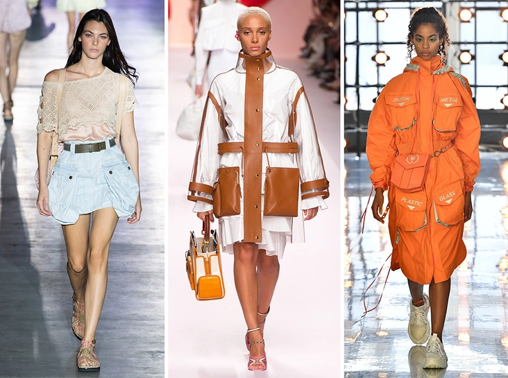 В отличие от своих лондонских коллег, миланские дизайнеры размещают крупные карманы не только на актуальных брюках карго, но и вообще на любых предметах гардероба. В коллекции Альберты Ферретти карманы на юбках живут своей жизнью и выходят за пределы мини-юбки, а Карл Лагерфельд в коллекции для Fendi украшает контрастными накладными карманами из кожи прозрачное пальто из ПВХ.