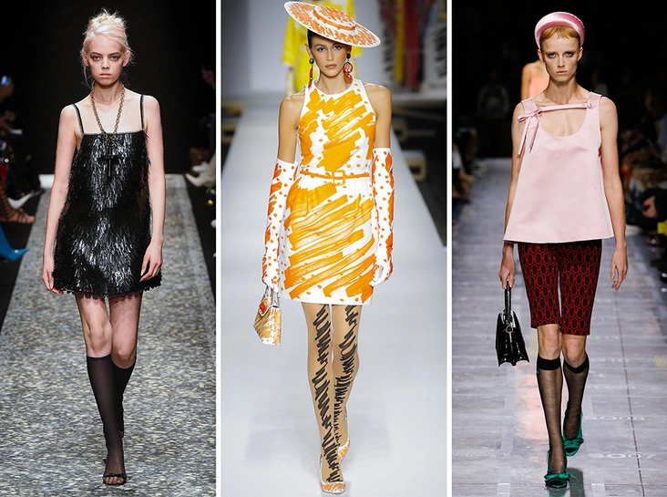 Любители капроновых чулочно-носочных изделий одержали верх над трендами и непреложными правилами от модных стилистов — капрон снова в моде. Более того, если раньше моветоном считалось, когда из-под обуви выглядывают уплотненная пятка или носок, то теперь эта заповедь не работает: Prada, например, сочетает черные капроновые гольфы с открытыми босоножками.