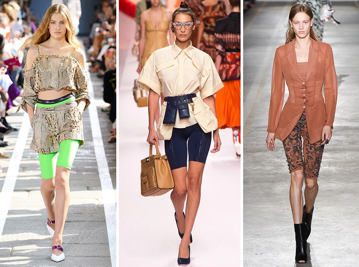 Облегающие велосипедки все-таки выиграли это модное противостояние: те, кто закрывал глаза при виде этой вещи весной и летом 2018-го и иронично заявлял, что они с нами будут недолго, в новом сезоне вынуждены будут смириться и даже попробовать подружить их со своим гардеробом. Чтобы они выглядели не как составляющая часть образа спортсмена, стоит сочетать велосипедки с вещами других стилей — например, добавить классический маскулинный пиджак или короткое платье из струящегося шифона — сочетания необычные, но крайне актуальные.