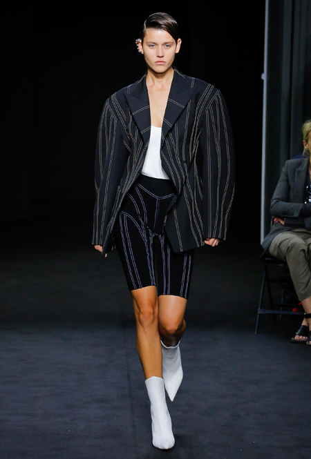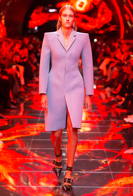Фантазии на тему маскулинной одежды в женском гардеробе выразились теперь в силуэте «перевернутый треугольник» — к слову, тоже позаимствованом у модниц 80-х. В новом сезоне бренды предлагают широкий выбор объемных приталенных жакетов, однако линия плеча по сравнению с прошлым сезоном увеличилась. Кажется, стоит вспомнить уроки алгебры и подбирать гардероб при помощи транспортира: чем острее будет угол, тем трендовее будет ваш жакет.
