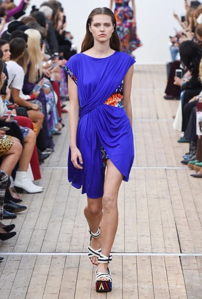 Один из самых загадочных цветов темно-синего спектра станет лидером будущего сезона. Глубокие и насыщенные синие цвета (например, индиго с фиолетовым подтоном)— уже достаточно яркие, чтобы играть главную партию в образе, однако в новом сезоне дизайнеры сочетают их не только с монохромной гаммой, но и экспериментируют с не менее красочными и трендовыми оттенками будущего сезона. Например, Dries Van Noten ставит в пару к кобальту яркий канареечный, разбавляя их белым и черным: вместе эти оттенки создают свежую весеннюю палитру.