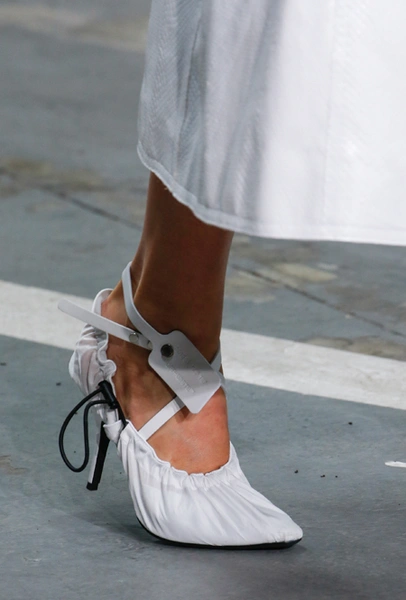 В новом сезоне эта деталь имеет не только утилитарную функцию и практическую пользу — зашнуровывают самые модные кроссовки на манер скалолазной обуви — но и декоративную, украшая элегантные босоножки или утягивая мини-платья.