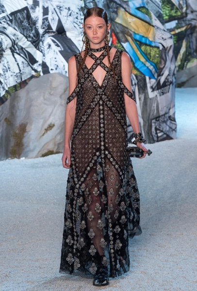 Полупрозрачные платья из черного кружева явно приглянуться тем, кому поднадоела техника кроше. Без последней в новом сезоне мы все же не обойдемся: вязаные наряды и аксессуары остаются на пике популярности. Однако рукодельницам теперь открыт максимальный простор для творчества — тонкое кружево и сетка здесь точно станут отличными помощниками.