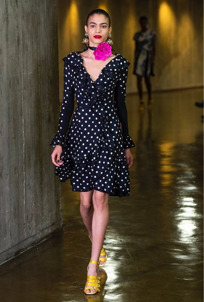 С самым весенним цветочным принтом соревноваться в популярности может разве что «polka dot» или «горох». Простой и одновременно сложный принт отлично сочетается как с монохромной гаммой, так и с другими активными принтами — флоральными, анималистическими или геометрическими. За это его и любим!