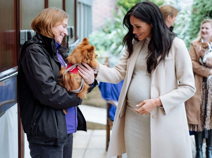 Герцогиня Сассекская может сделать модную сенсацию (и поле для горячих обсуждений в сети) даже там, где, казалось бы, никакой сенсации и нет. 16 января супруга принца отправилась с официальным визитом в одну из своих новых патронируемых организаций – благотворительное общество Mayhew, которое помогает бездомным животным. На первый взгляд, аутфит, который выбрала герцогиня, был довольно типичен: однобортное пальто, платье чуть выше колена, классические лодочки и миниатюрная сумка. Все – в одной цветовой палитре.