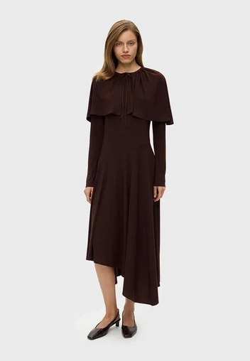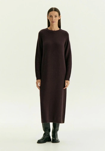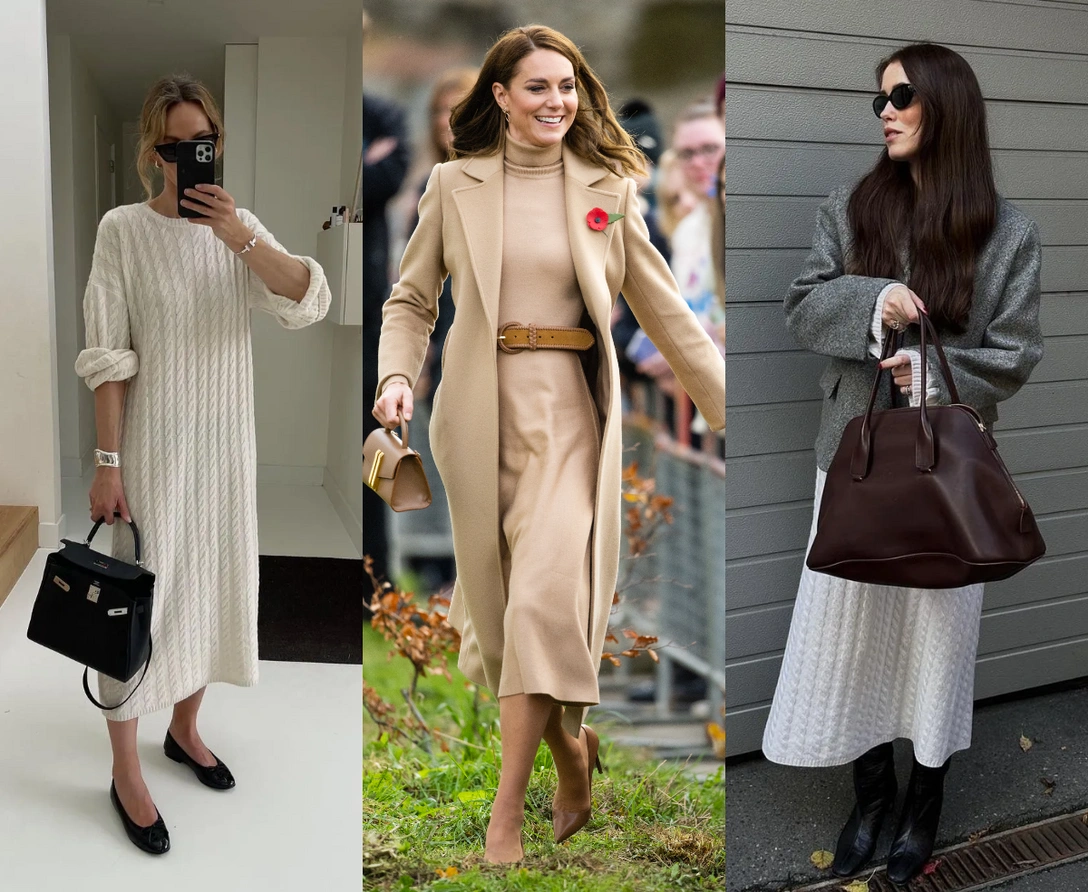 По цветам зима 2026 года однозначно на стороне сложной нейтральной гаммы. Какао, молочный, шоколад, серый меланж, графит, темный оливковый — все эти оттенки делают трикотаж визуально дороже, а еще идеально сочетаются между собой. Если хочется, чтобы платье стало акцентом, пусть оно будет не в кричаще‑красном, а в глубоком винном или темно‑фиолетовом оттенке: в таком исполнении даже простой силуэт останется в категории «умной моды», а не импульсивной покупки с маркетплейса (читайте также: Главный цвет Парижской Недели моды — и как интегрировать его в свой гардероб).