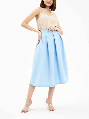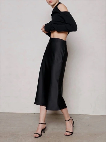 Женственный силуэт, акцент на талии — это то, что нас привлекает в такой юбке, но она, к сожалению, смотрится неактуально и довольно инфантильно. Вместо нее стоит выбрать более летящие силуэты, струящиеся ткани. Это также будет подчеркивать женственность, но выглядит более современно и стильно.