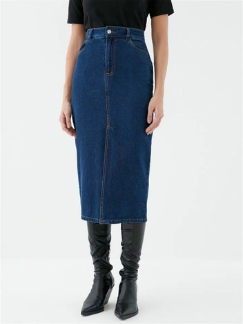 Джинсовая юбка по колено