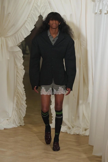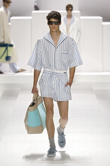 В весенне-летней коллекции 2021 года Miu Miu выпустили шорты колоссально короткой длины и хотя байеры сомнительно качали головой, заявляя, что модницы вряд ли рискнуть надеть такую экстремальную длину, вскоре на улицах Москвы, мы увидели тех, кто легко принял этот тренд. Не беремся предполагать, ждет ли ультрамини такая же судьба в мужском гардеробе, но Миучча Прада не планируется останавливать свой смелый эксперимент и в сезоне весна-лето 2026 она все-таки надела на мужчин сверхкороткие шорты. Впрочем, не она одна расширяет границы допустимого. Dolce&Gabbana представили пижамные шорты сильно выше колена, свободные и из качественного хлопка, а это тот формат боксеров, которые обожают мужчины. Ждем отпускные фото с Лазурного берега в главной новинки сезона от итальянских дизайнеров уже скоро.