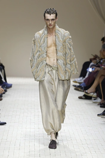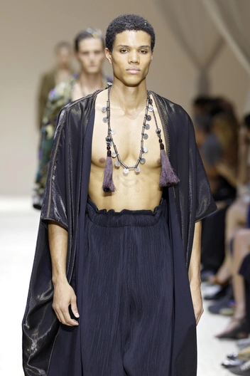 Многообразие ярких деталей и аксессуаров мы тоже привычно относим к женскому гардеробу, но Dolce & Gabbana перевернули игру. Они запустили глобальный тренд на образы в пижамном стиле, а чтобы брюки и рубашка не смотрелись слишком просто, украсили их блестящими, бонвиван-вышивками. Также поступили и Emporio Armani, показав джемпер с сеткой из жемчужин, пошитый ручным трудом, и пиджак со сложной вышивкой. Кажется, что модники в городской среде такие вещи выгулять постесняются, но в отпуске вполне возможно. Кто не хочет хотя бы раз в жизни почувствовать себя героем фильма Соррентино?