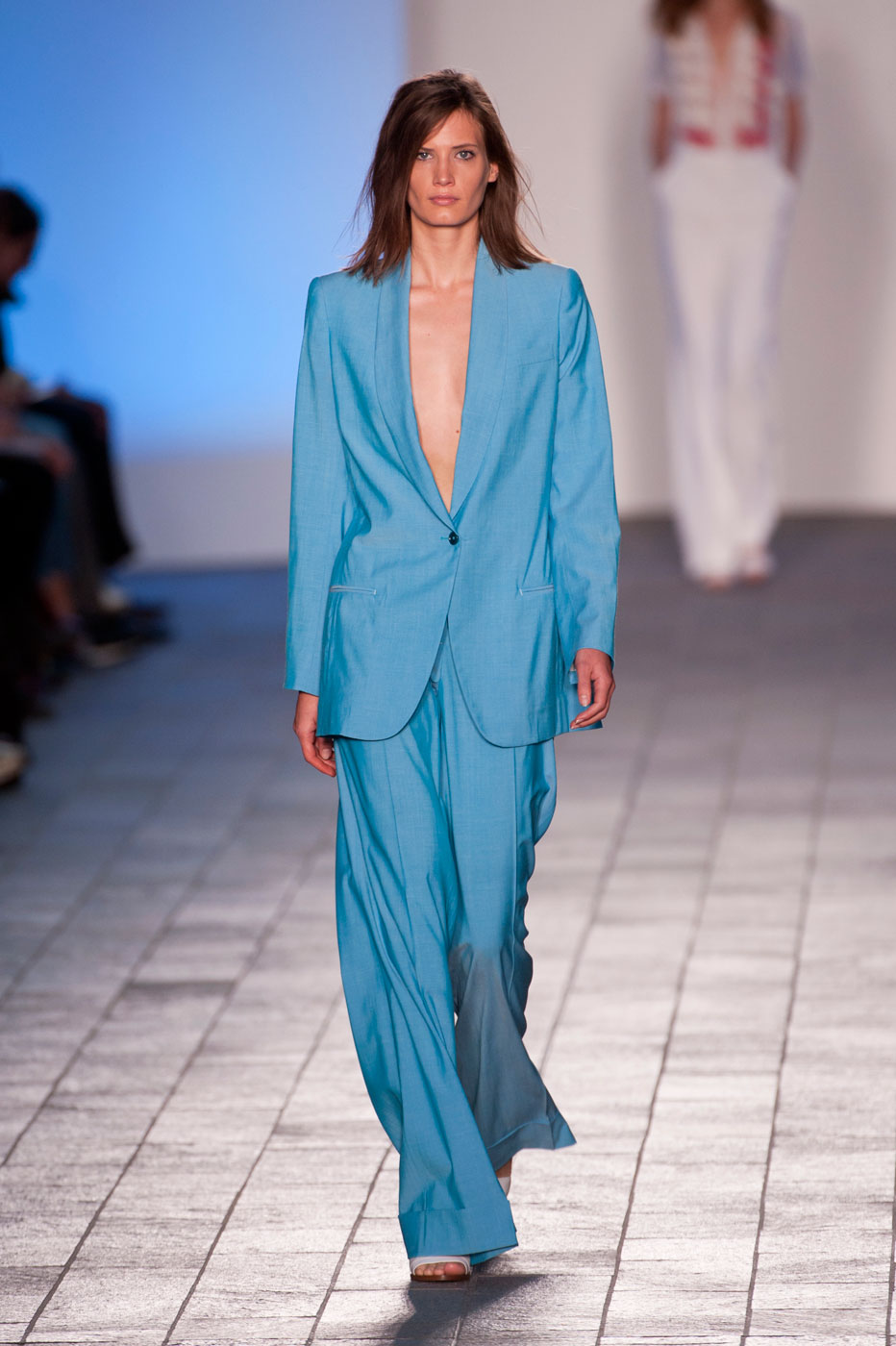 #3. Самые красивые брючные костюмы в новом сезоне будут у Paul Smith. Расслабленный крой, много воздуха и мягкие линии – сэр Пол повторил знаменитые костюмы Бьянки Джаггер (Bianca Jagger) в разных цветах. Наш любимый – небесно-голубой.