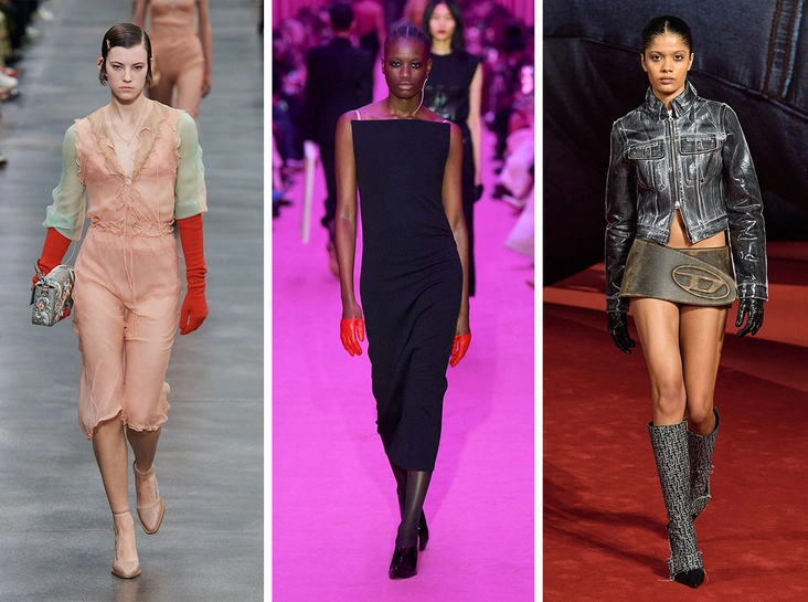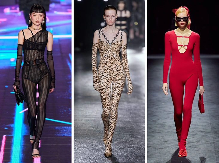Креативные директора Dolce & Gabbana, Blumarine и Roberto Cavalli уверены, что вечерние и повседневные платья должны уступить дорогу обтягивающим комбинезонам. Дизайнеры показали эффектные полупрозрачные модели по фигуре, которые точно придутся по душе Меган Фокс и Хейли Бибер, комбинезоны с принтом, которые уже носит Джиджи Хадид, а также более спокойные монохромные модели со смелым вырезом и декольте.