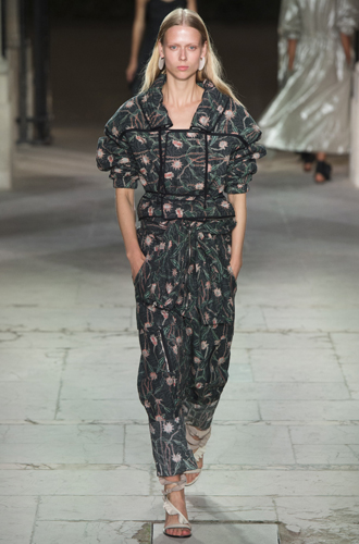 Weekend’ные комбинезоны, (хотя эта классификация довольно условна) ─ самые «цветочные». От мелких и романтичных, крупных и ярких, фантазийных, абстрактных до «плодово-ягодных». Сюда же попадают большинство комбинезонов из крупного шитья, восточный орнамент и полупрозрачные ткани. Самый необыкновенный, еще и напоминающий 60-е годы – у Alice McCall.