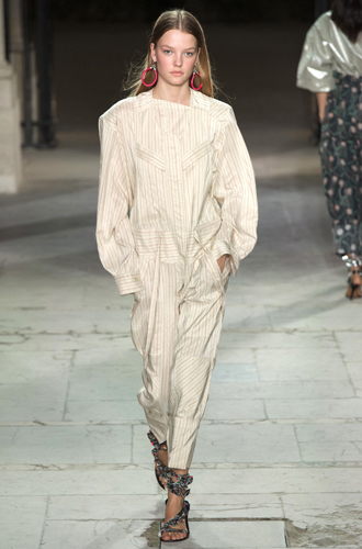 Она теперь не обязательно означает море, а море – полоску. Но она стала одним из самых ярких трендов среди летних коллекций комбинезонов: почти смирительная рубашка у Изабель Маран, синее-синее море у Chloe и Carolina Herrera. У первой более расслабленное и французское, у второй «пахнущее» старыми деньгами. А Lanvin с отылом к пижаме почему-то напоминают исключительно о Гетсби и Обломове.