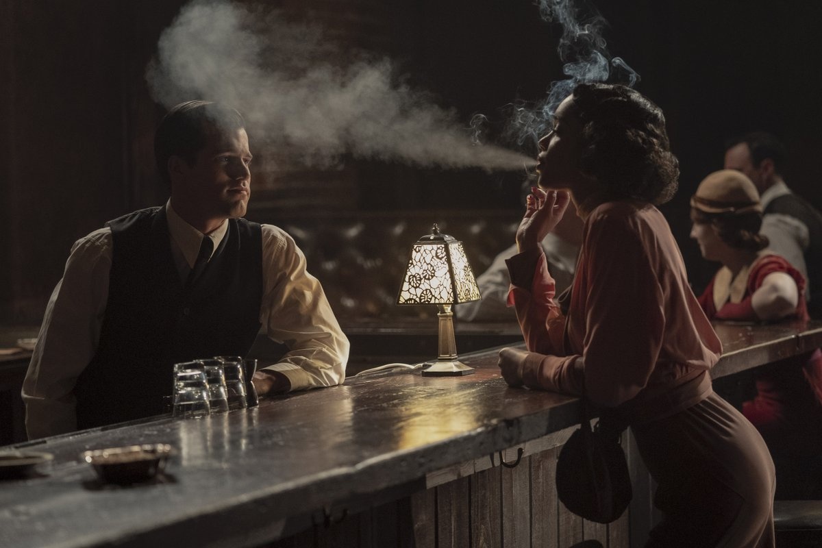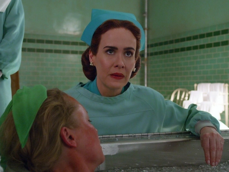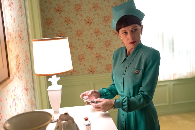 В «Сестре Рэтчед» задача для костюмов была совершенно иная, чем в «Голливуде»: здесь костюм должен раскрывать характер героев сериала, демонстрировать их трансформацию, то, как персонажи взаимодействуют друг с другом. У каждого здесь есть пальто или тренчи, которые помогают зрителю почувствовать воссозданное настроение и атмосферу фильма нуар. Выраженные плечи, подчеркнутая талия, перчатки длиной до локтя и шляпы — все это следствие вдохновения художников по костюмам фильмами и модными журналами послевоенных лет.