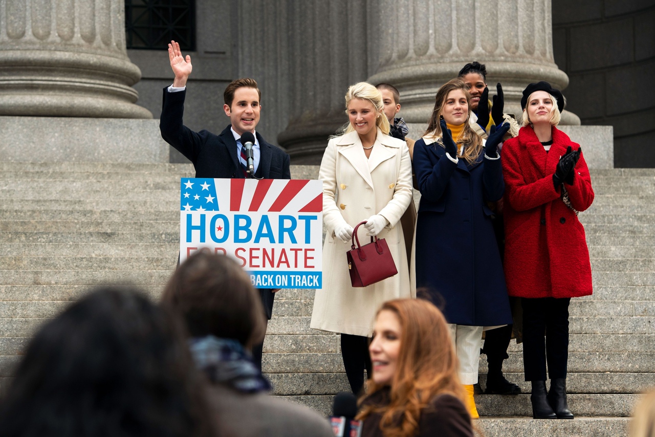 После эпохи 80-х Райан Мерфи возвращается в наше время и создает сериал «Политик»: элегантные силуэты героини Гвинет Пэлтроу влюбляют в себя с первых серий. Небесно-голубой костюм и легкое летящее платье от Каролины Эррера по стилю отсылают нас к 70-м годам, при этом они актуальны и сегодня.