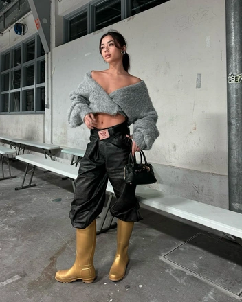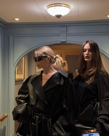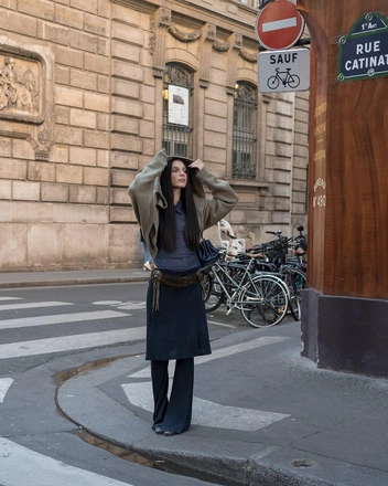Елена Перминова — частая гостья Недель моды. После Милана она сразу отправилась в Париж, чтобы и дальше впечатлять своими стритстайл-образами. За несколько дней Елена успела побывать на шоу Dior в асимметричном песочном костюме, на Nina Ricci в элегантном блейзере и маленьком черном платье, а также на Miu Miu в наряде с фирменной стилизацией бренда — обернутым в виде корсета свитером и гетрами в паре с открытыми туфлями. Однако нас больше всего впечатлил образ Елены на показе Balenciaga: объемный черный тренч она сочетала с плотными чулками и нашумевшими очками-маской из коллекции осень-зима 2024.