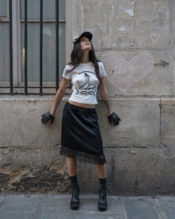 Инфлюенсер и стилистка Мария Червоткина вновь покоряет модные просторы. На этот раз она посетила презентации новых коллекций Vaquera и Julie Kegels. Для первого показа Мария выбрала стильный и необычный образ: шелковую юбку с кружевной оборкой она надела с белой футболкой, на которой была имитация ретро-бра с конусообразными чашками. А вот на шоу Julie Kegels она блистала в расслабленном наряде с толстовкой и трендовыми брюками-юбкой.