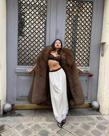 Не отставала от нее и другая российская инфлюенсер — Диана Коркунова. Она тоже была на Miu Miu, где позировала с Марком Эйдельштейном и A$AP Rocky, снялась перед шоу Matières Fécales в кожаном платье Rick Owens и заглянула на показ Vaquera в оверсайз-шубе в сочетании с шелковой юбкой и кружевным бра.