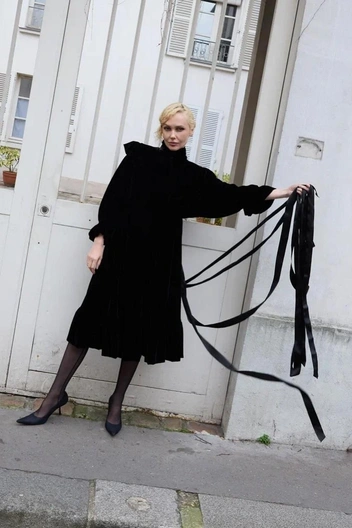 Главная готка российской моды Виктория Чураева, она же Salavat Kypere, в Париже была на показах любимых брендов, вещи которых она часто носит и в обычной жизни. Среди них японские Undercover, Junya Watanabe и Noir Kei Ninomiya, традиционные дарк-фэшн игроки Rick Owens, Ann Demeulemeester и Enfants Riches Déprimés, а также молодой Matières Fécales, у которого на прошедшей Неделе моды как раз состоялось дебютное шоу.