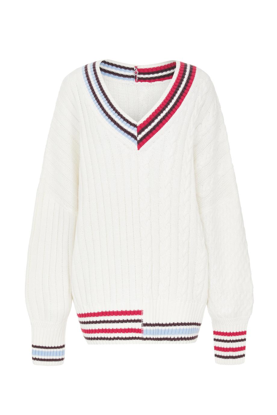Собственно, расслабленность — это его ключевая черта. Свободный силуэт, неглубокий вырез, длинные рукава — он выглядит так, как будто сошел с каталога Фиби Файло для Old Celine. А потому идеален с прямыми брюками, юбками карандаш и даже облегающим силуэтом — у этого свитера есть магическое свойство делать любой образ легким и непринужденным.