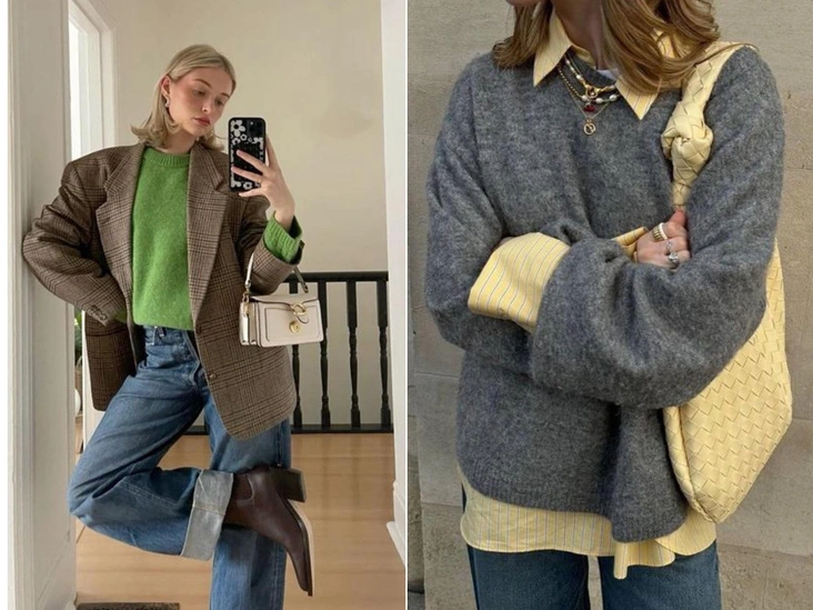Как стилизовать такой свитер? Как говорится, it depends. Если перед нами укороченный свитер, то подбираем к нему варианты с завышенной талией — так ноги будут казаться бесконечными. Классику с круглым воротом носим с прямыми джинсами и кроссовками на тонкой подошве, а объемный с высоким горлом идеально разбавить поясом и надеть с шелковой юбкой макси. А с какими цветами лучше всего сочетать трендовые оттенки — уже подробно написали в нашем гиде (читайте также: Прощай, butter yellow: какие цвета будут в моде осенью 2025 — полный гид).