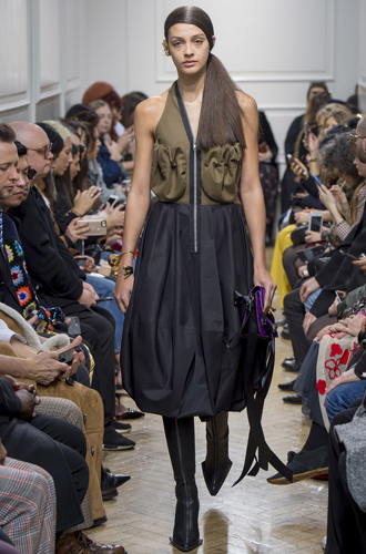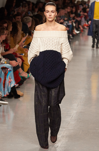 Причем речь идет о карманах, удивительным образом располагающихся на самых неожиданных местах. К примеру, Simone Rocha не просто демонстрирует нарочито огромные карманы на одном из твидовых костюмов, но еще и декорирует их мехом для пущей убедительности. Christopher Kane делает карман главным аксессуаром платьев-футляров, а J.W. Anderson выступает с не иначе как ожерельем с двумя мешочками на груди. Что ж, очевидно, этот тренд продолжает покорять мировые подиумы.