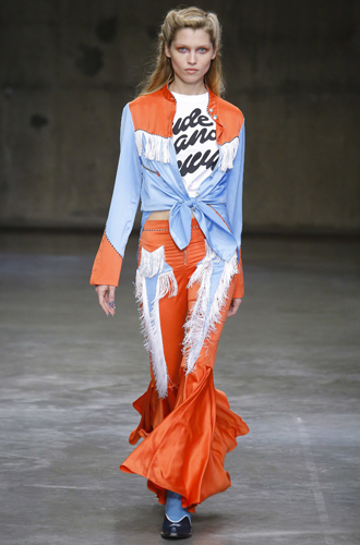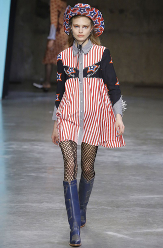 Тренд, о котором на этот раз Лондон заявил куда громче Нью-Йорка, хотя коррелирует он, прежде всего, именно с Америкой. Дерзкий и опасный Western, очевидно, вдохновил британских дизайнеров на создание сумасшедших образов: будь то длинные платья в полоску с рюшами от Erdem или же настоящий костюм cowgirl от Ashley Williams (в который, кстати говоря, уже вошли два ярких тренда: на кроп-топы и на джинсы на высокой талии). Список трендсеттеров продолжают Temperley London, House of Holland, и Bora Aksu.