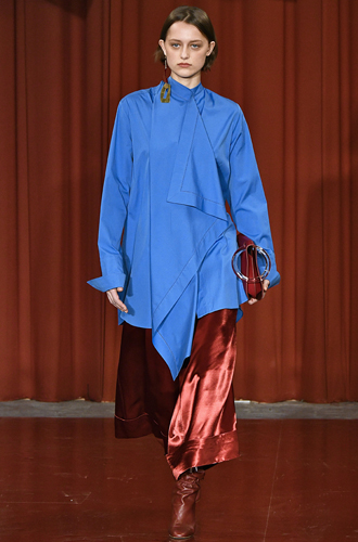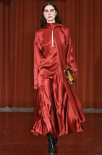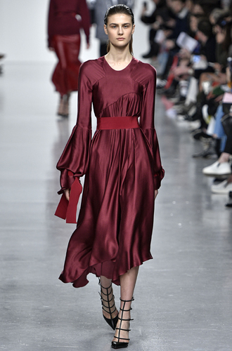 Кроваво-алый, предложенный британцами, с одной стороны, является великолепной альтернативной винному, взорвавшему нью-йоркские показы, а с другой – даёт широкий простор для сочетаний с тем же винным цветом. Что британцы и продемонстрировали. Зрелищные ансамбли кроваво-красного с цветом вишни, сливы или же бледно-розовым на наших глазах формируют новый тренд на оттенки красного, перед которыми этой осенью точно не устоит ни одна из нас. Так что неважно, чей наряд вы выберете – образ от Versus Versace или же Roksanda – если в наряде будет красный, то вы в тренде.