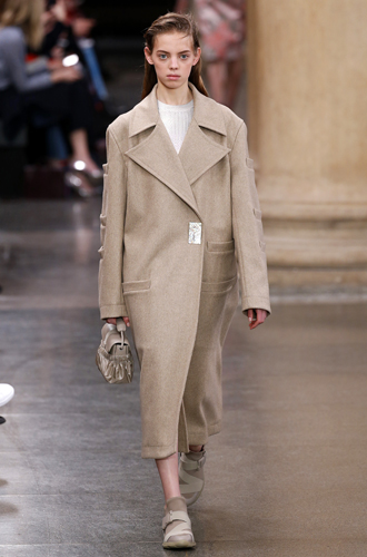 Antonio Berardi демонстрирует сдержанную модель с длиной по колено, но (!) с максимально длинными рукавами. Более или менее выдерживают привычную нам конструкцию пальто и David Koma с MM6 Martin Margiela. Если же вы готовы без страха и в полной мере принять этот новый «одеяльный» тренд, то советуем обратить внимание на решения от Preen by Thornton Bregazzi и Mulberry.